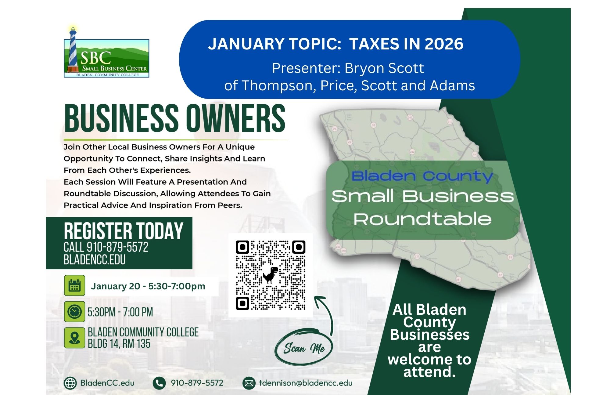 Bladen County businesses have the opportunity to learn about the latest strategies in Marketing through a new FREE Lunch and Learn seminar series.The Small Business Center at Bladen Community College in partnership with the Elizabethtown – White Lake ...