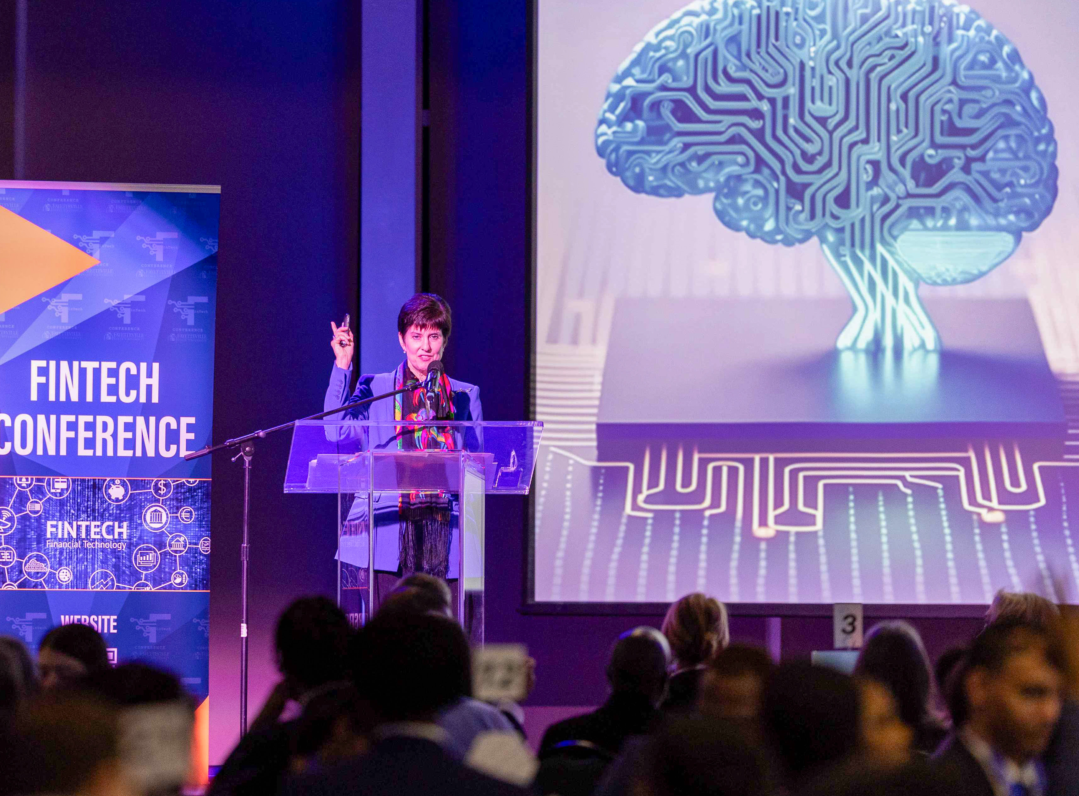Teena Piccione, secretary and state chief information officer of the North Carolina Department of Information Technology, delivers a keynote address during Fayetteville State University’s Fintech and Insurtech Conference on Oct. 30. Piccione spoke on ...