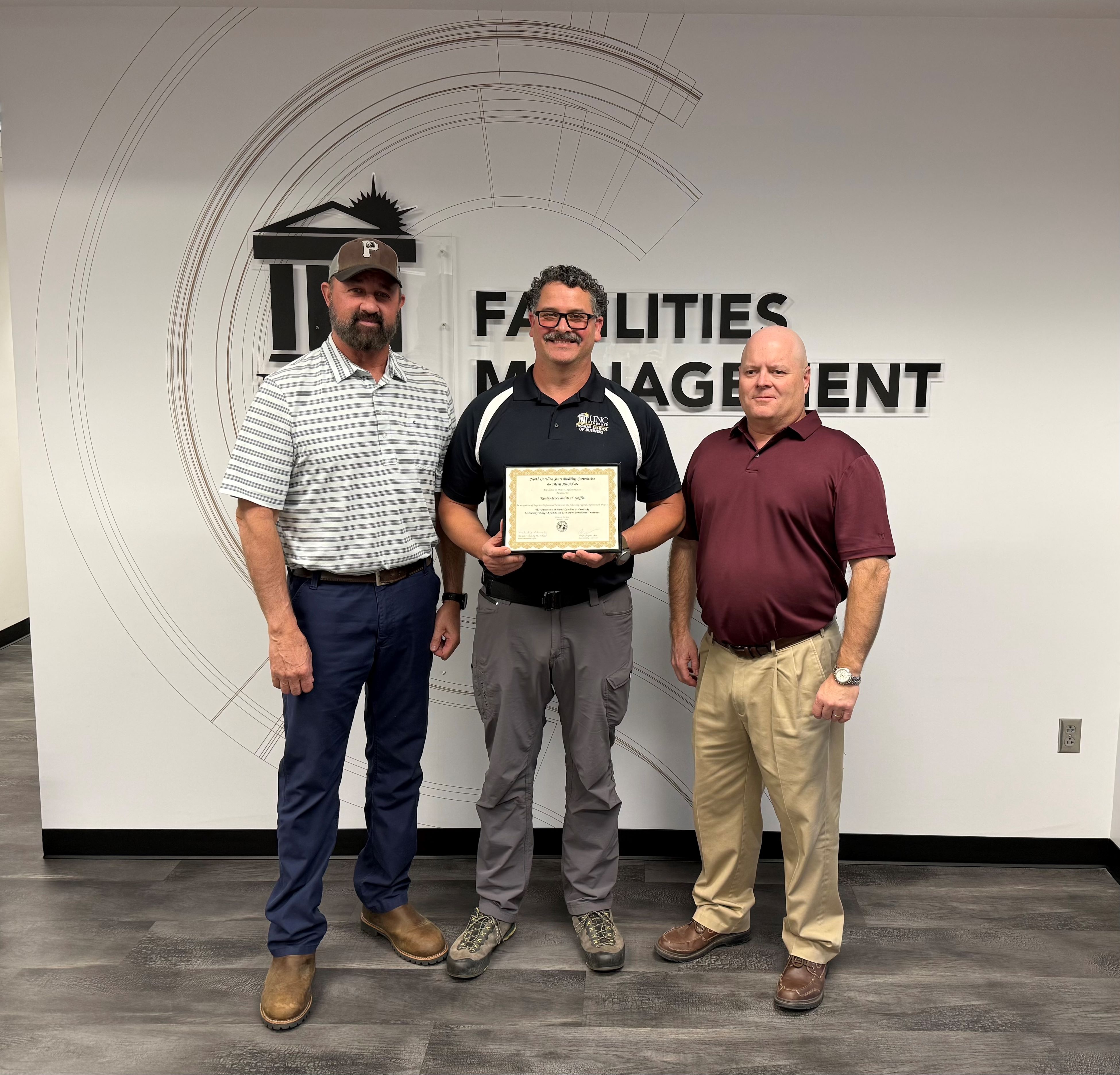 Kevin Witmore, senior project manager, and Douglas Hall, interim architect, accepted the award at a luncheon at the McKimmon Conference and Training Center in Raleigh.