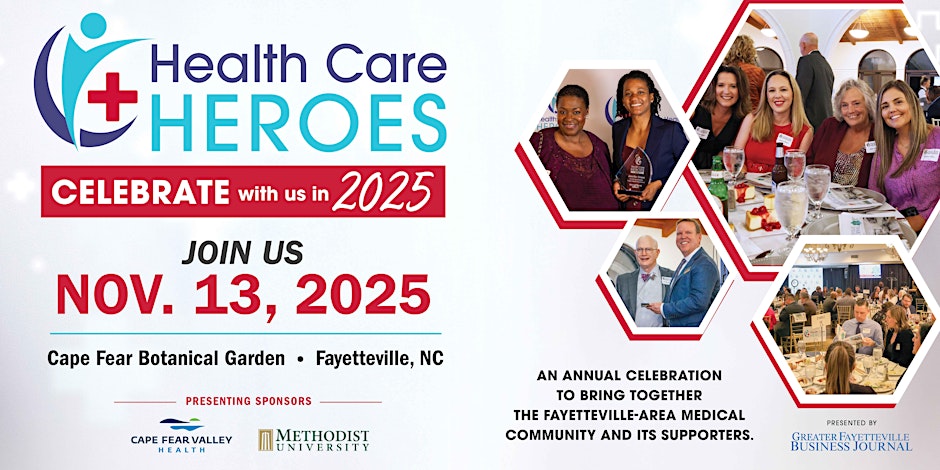 The Greater Fayetteville Business Journal is proud to announce that our annual Health Care Heroes Event is returning to Fayetteville for its third year in a row. The event will take place on Thursday, Nov. 13, from 5:30 p.m. - 8:30 p.m. at the Cape Fear Botanical Garden.