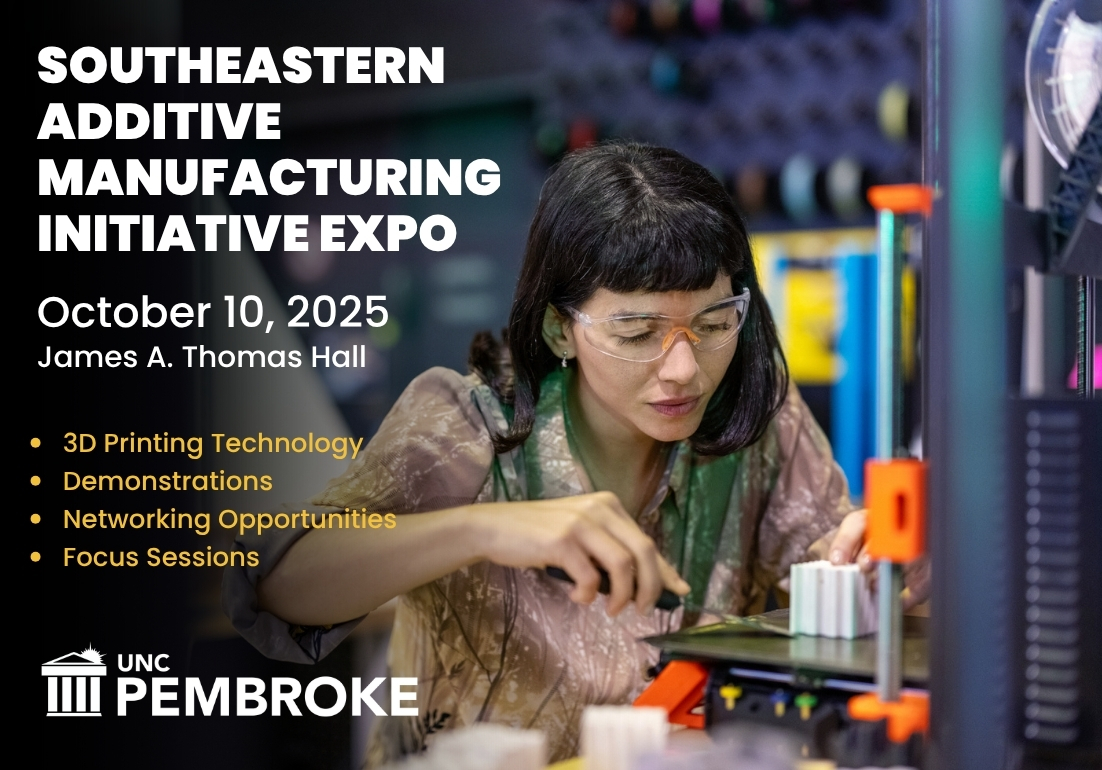 UNC Pembroke will host the Southeastern Additive Manufacturing Initiative (SAMI) Expo on Friday, Oct. 10, from noon to 5 p.m. at James A. Thomas Hall.