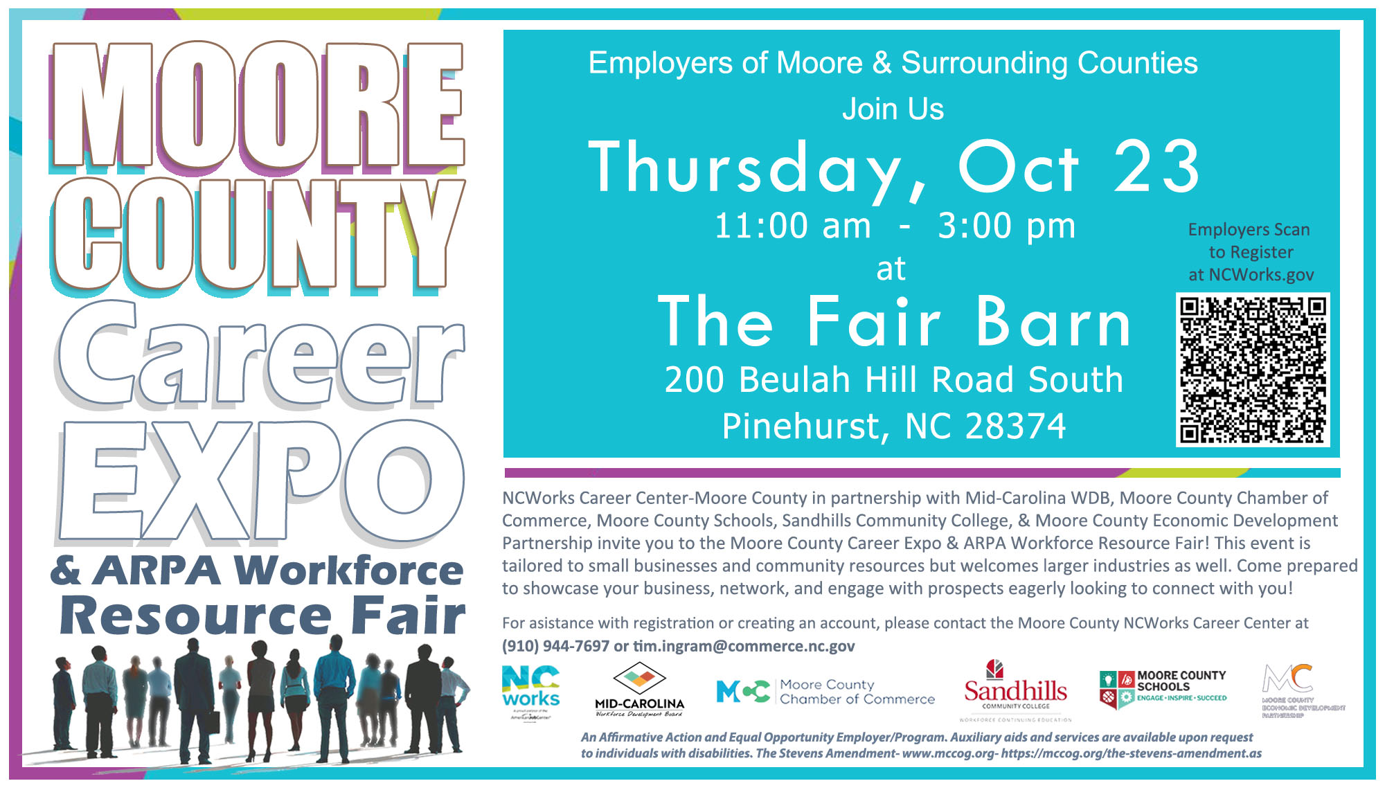 Businesses and job seekers in, around or interested in Moore County are invited to join some of the major workforce development organizations this Thursday, Oct. 23, for the return of the Moore County Career Expo & Resource Fair.