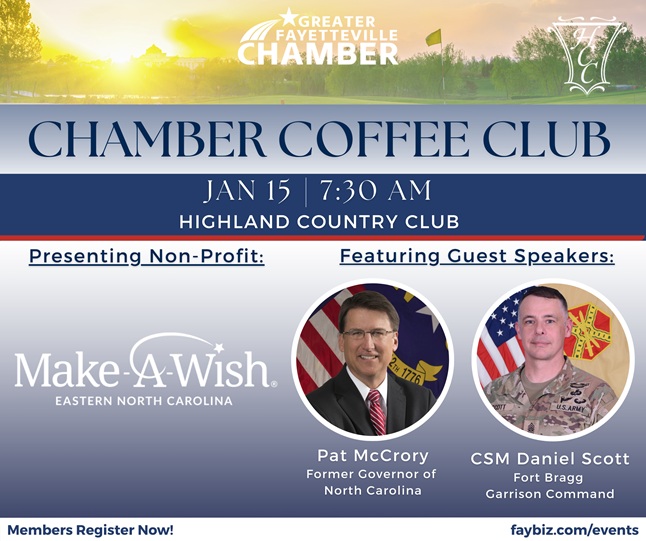 This event reflects the Chamber’s continued commitment to pro-business advocacy, education and networking for its members. The conversation will highlight the region’s strengths, including its diverse workforce, strong entrepreneurial ecosystem and the economic impact of Fort Bragg, one of the nation’s most valuable military installations.