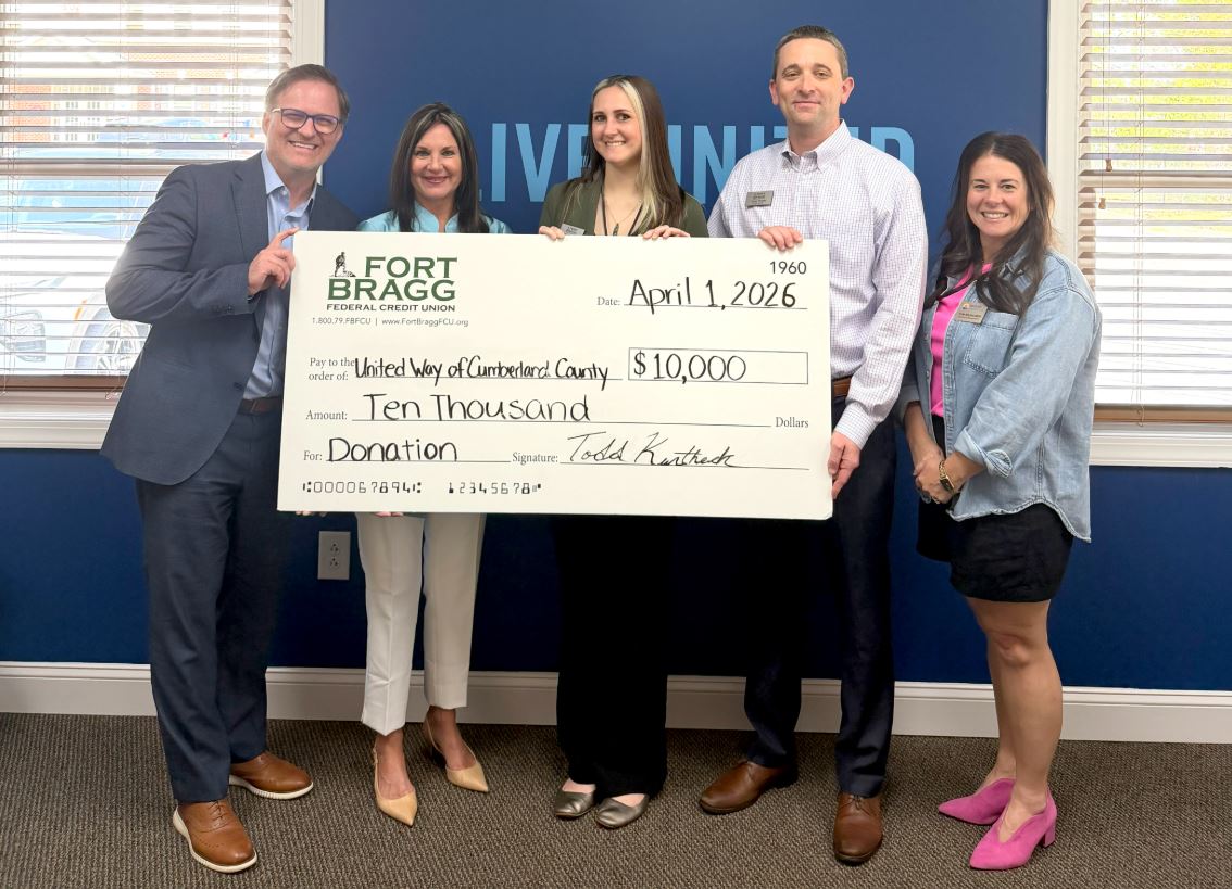 Fort Bragg Federal Credit Union (FBFCU) has donated $10,000 to United Way of Cumberland County, continuing a strong partnership dedicated to supporting and strengthening local resources throughout Cumberland County.