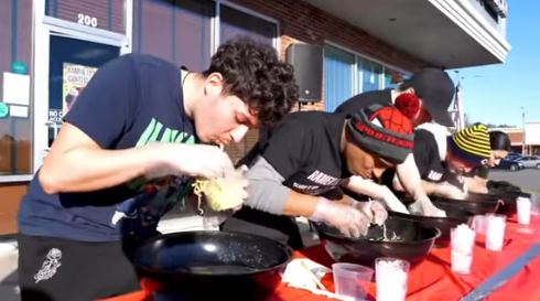 Five contestants will need to eat five pounds of ramen noodles, toppings and soup and finish first in order to take home the trophy and title of victor.