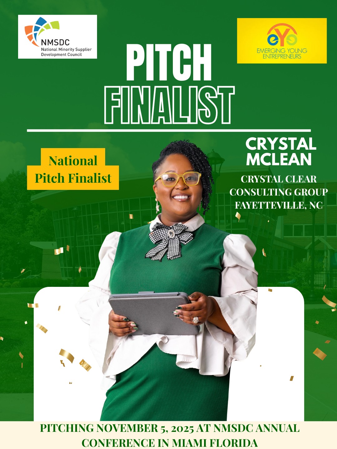 Out of more than 50 applicants nationwide, Founder and Chief Strategist of Crystal Clear Consulting Group Crystal McLean earned her place as one of only five finalists to pitch live at the National Minority Supplier Development Council (NMSDC) Annual Conference in Miami.