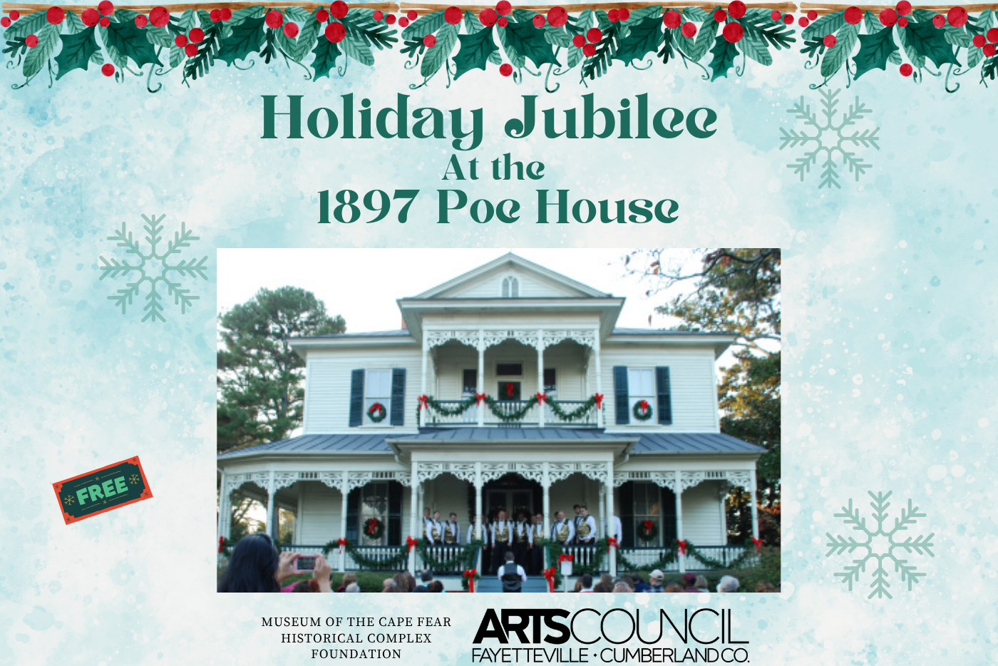 The Museum of the Cape Fear Historical Complex, part of the N.C. Department of Natural and Cultural Resources, invites you to attend this holiday event featuring a Christmas concert by Fayetteville’s own Coventry Carolers, Fayetteville Sound and Sweet Tea Shakespeare. The concert takes place on the front porch of the Poe House with performances every 30 minutes.