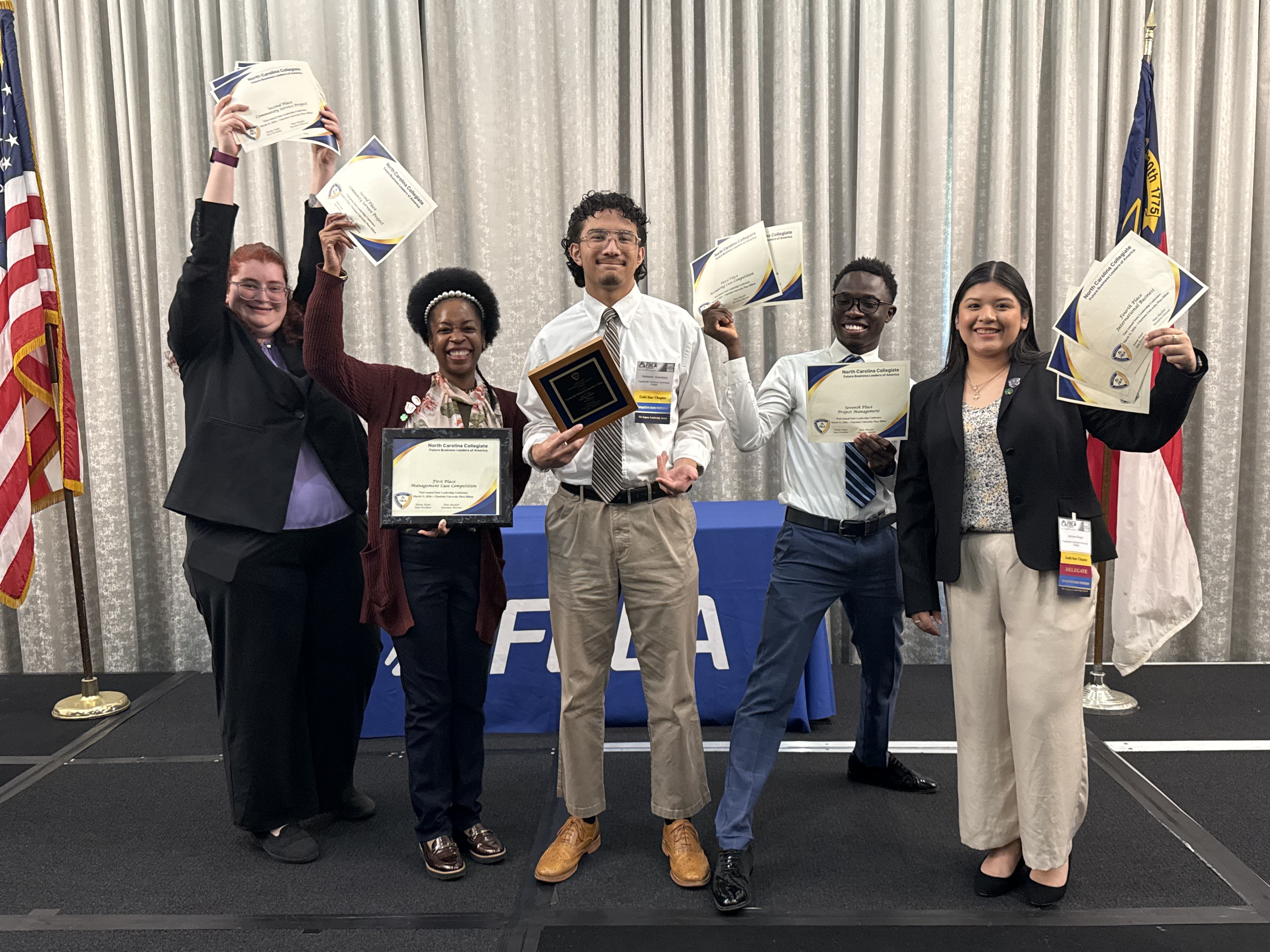Fayetteville Technical Community College’s FBLA-Collegiate chapter collected a bundle of awards last month after competing in the North Carolina Leadership Conference in Charlotte. The annual conference, which was held March 29-31, welcomed FBLA-Collegiate chapters from 2- and 4-year colleges and universities from across the state for a collaborative gathering focused on impactful leadership development and competition.