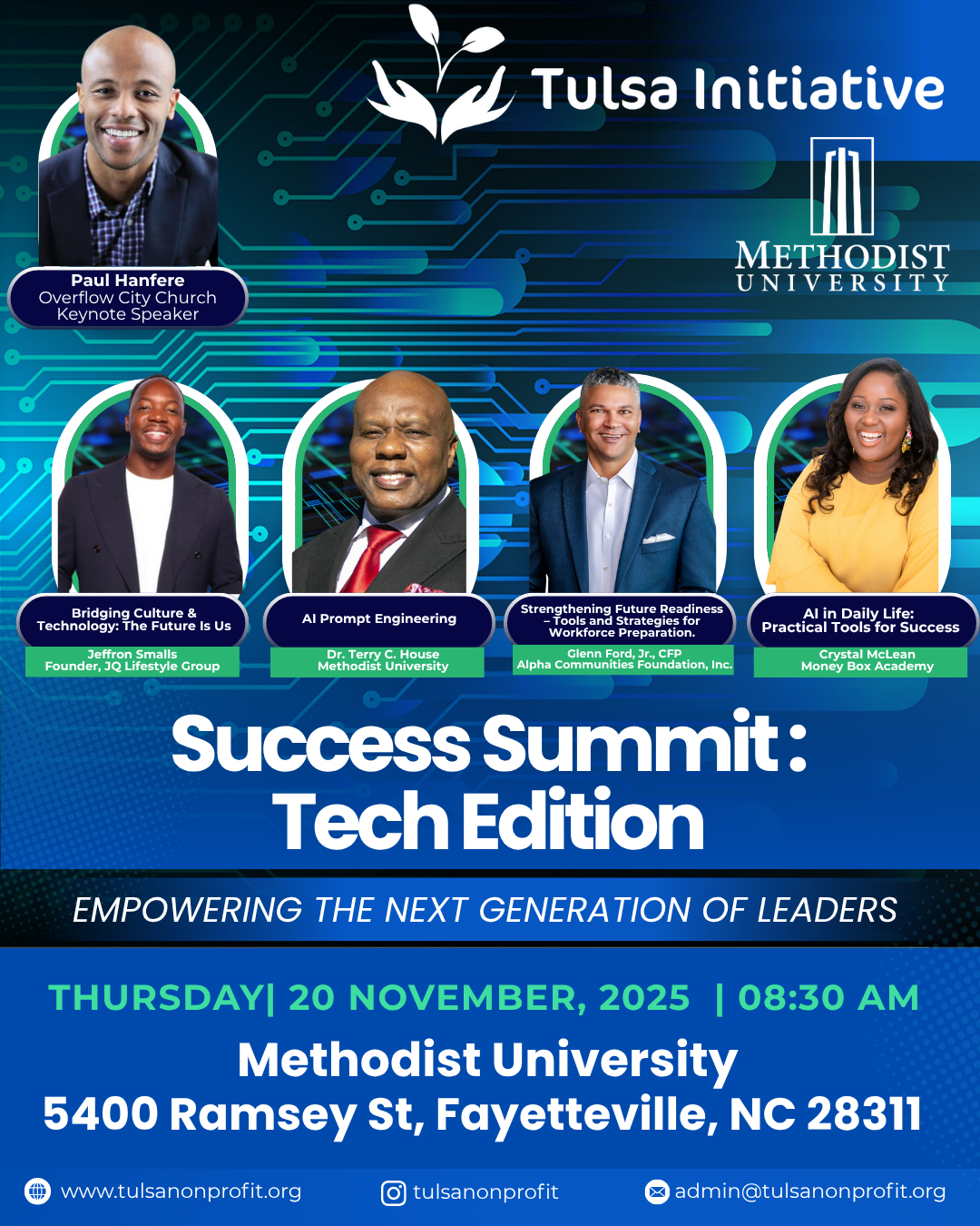 Flyer provided by The Tulsa InitiativeOn Thursday, Nov. 20, 2025, The Tulsa Initiative will host the Success Summit: Tech Edition at Methodist University, bringing together more than 350 high school students for a full day focused on technology, lead ...