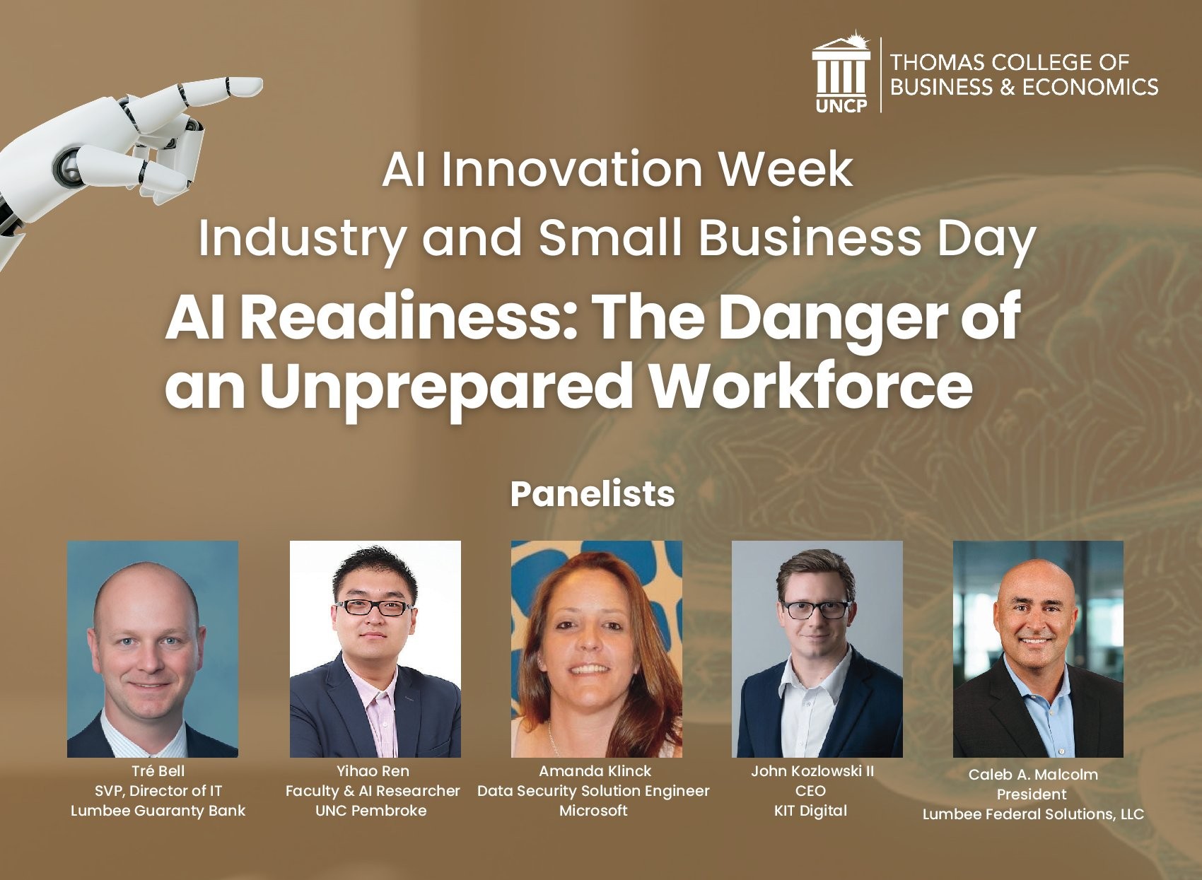 Graphic provided by UNCPThe Thomas College of Business and Economics at UNC Pembroke will host its second annual AI Innovation Week, March 30-April 2, 2026, bringing together educators, industry leaders, students and regional partners to explore the ...