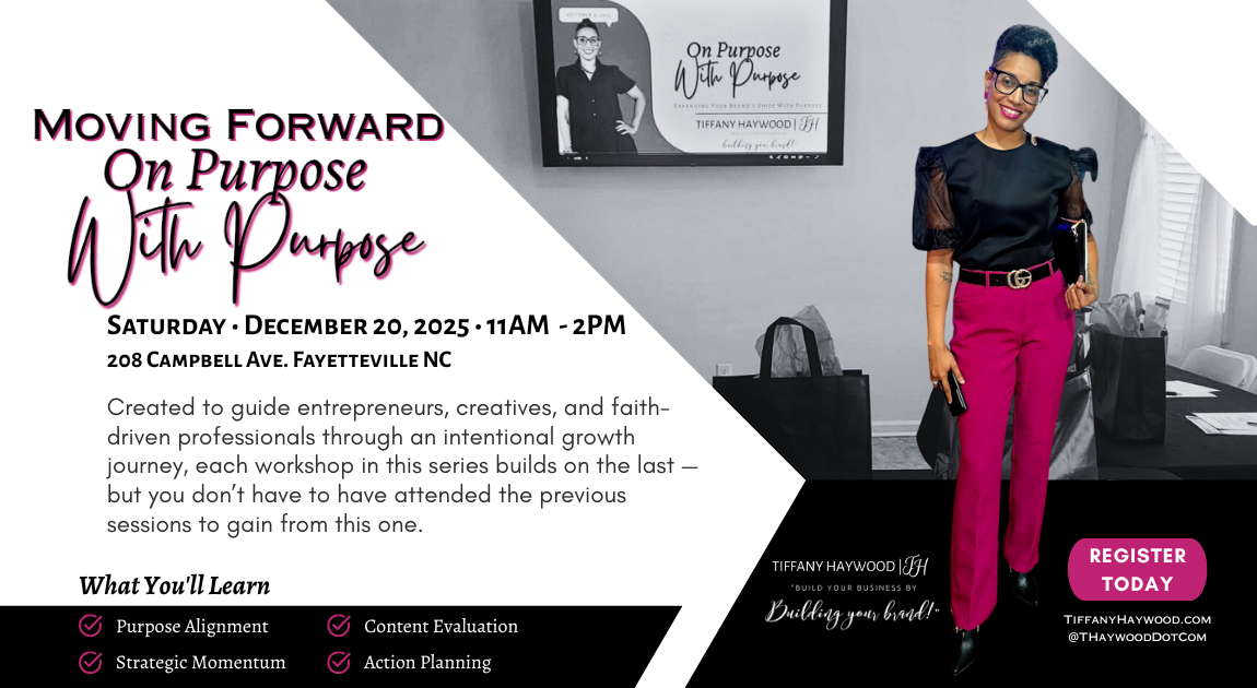 Brand consultant and SHEpreneur advocate Tiffany Haywood is closing out 2025 with the finale of her signature workshop series, On Purpose With Purpose. The third installment, MOVING FORWARD On Purpose With Purpose, will be held Saturday, Dec. 20 ...